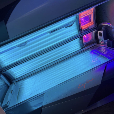 Spray tanning provides instant colour using products like Sienna X, while sunbeds gradually build a tan over time.
